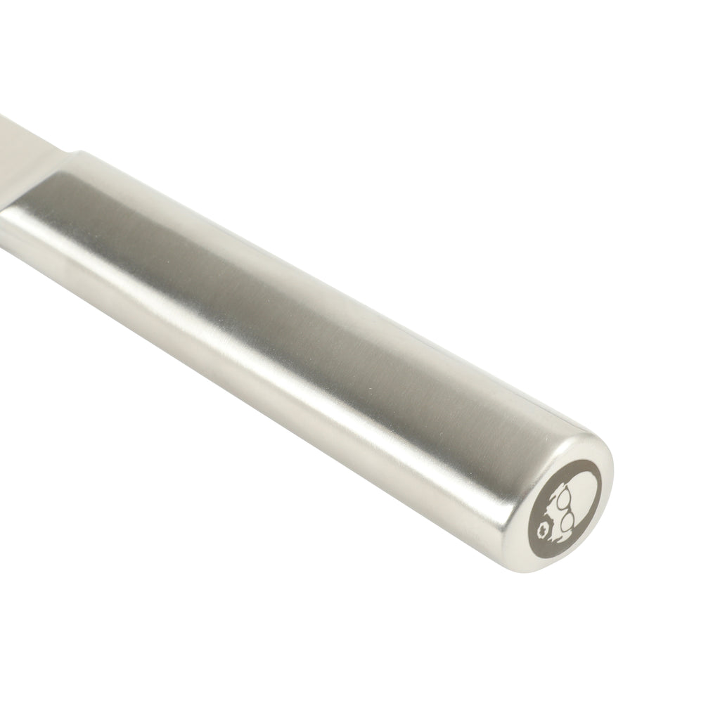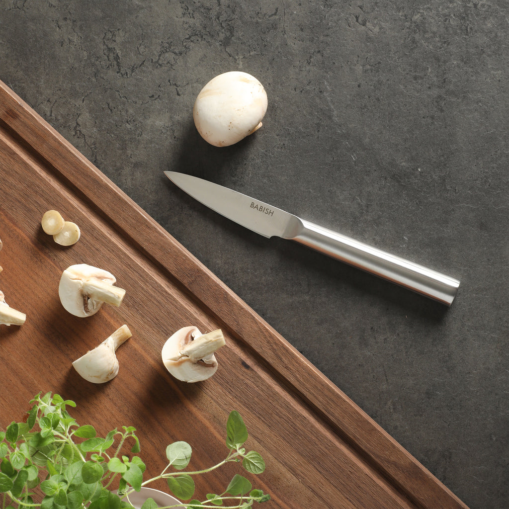 Easily maneuver through fruit skins and rinds with the Babish 3.5-inch German Steel Paring Knife. Constructed from high-carbon, 1.4116 German steel, it achieves precise peels and fine textures with its forged, full tang blade at a 13° cutting edge angle. The seamless stainless steel handle offers a secure and balanced grip for safety and control. Hand wash only.