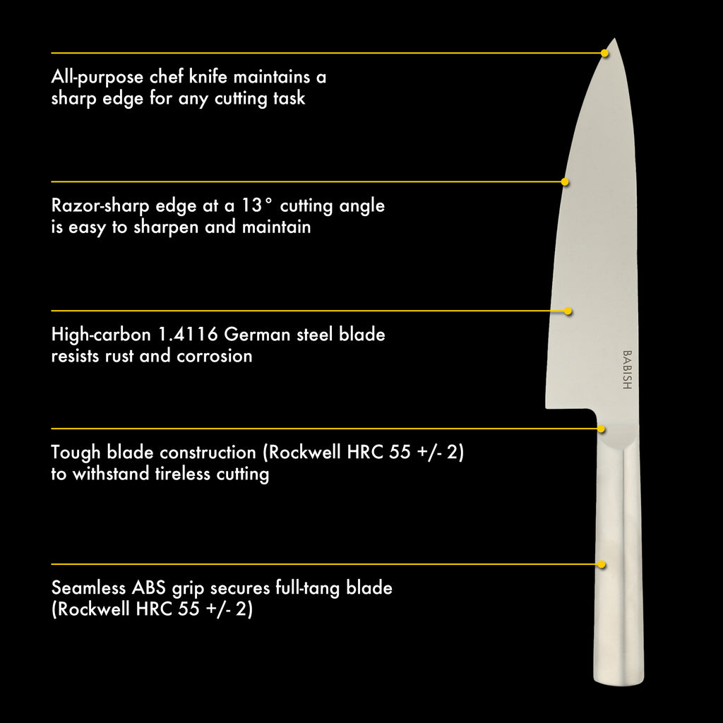 Babish 8-Inch Chef Knife – High-Carbon 1.4116 German Steel Kitchen Knife, Full-Tang Razor Sharp Chef’s Blade for Chopping, Slicing, Dicing & Everyday Prep