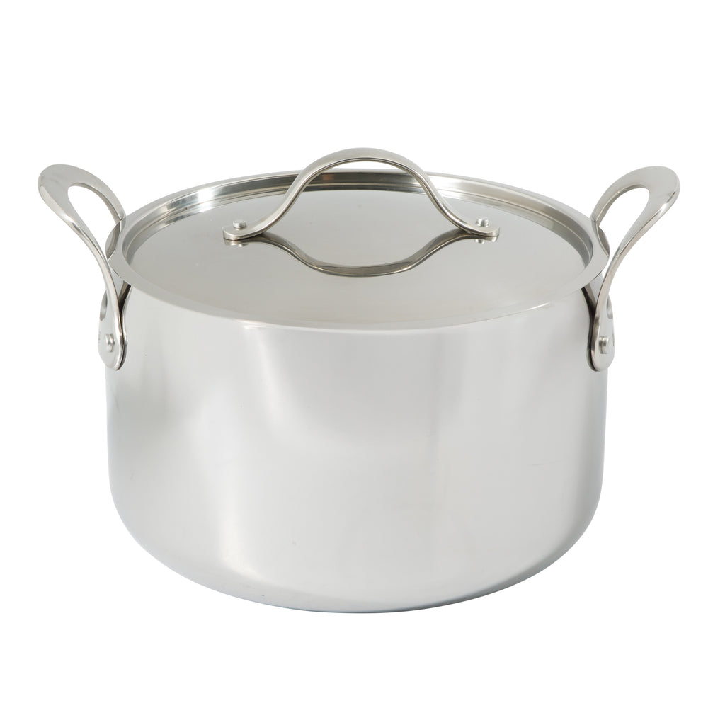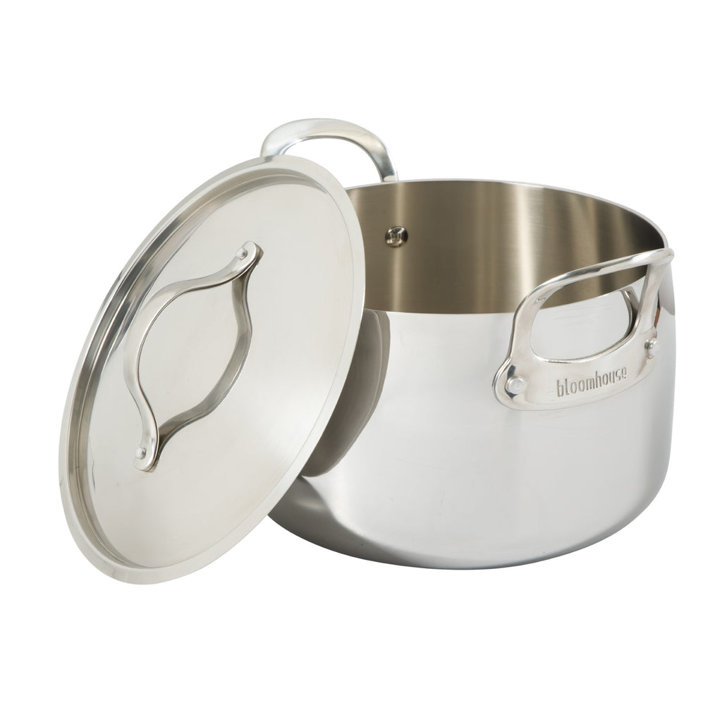 Stainless steel often doesn’t get the recognition it deserves for its long-lasting durability and consistent cooking performance. Its nonreactive surface supports a healthier lifestyle by preventing metallic leaching into food—especially when preparing acidic dishes.By maintaining the nutritional integrity of your ingredients, these pans ensure every meal is as nourishing as it is flavorful. Beautiful to cook in and to look at, this large 8-quart stock pot from bloomhouse® proves that presentation matters as much as performance. The polished stainless steel finish and graceful curvature, inspired by Colombian sculptures, lend an elegant, professional look to your kitchen. Crafted from high-quality, 18/8 stainless steel, this set features a heat-responsive, base-to-rim aluminum core for efficient heat distribution to avoid cool spots and uneven results. The extended cast handles provide a safe and comfortable grip when lifting, transferring and serving.