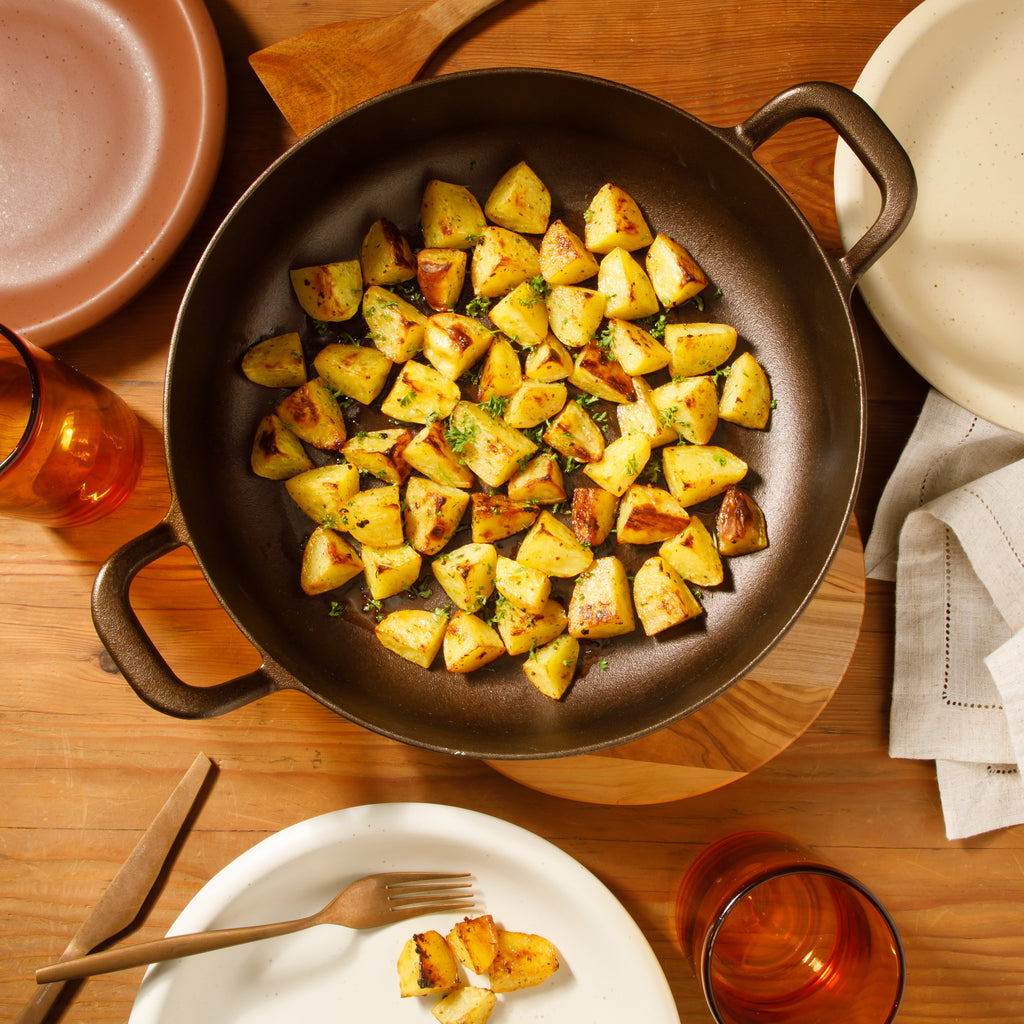 Tried and tested as a versatile kitchen classic, pre-seasoned cast iron cookware has been a faithful companion to home cooks for years. Its heavy-duty craftsmanship emboldens them to cook and serve a variety of recipes – suitable for single-skillet spaghetti, seared steaks, pan-roasted potatoes and crispy-edged desserts. The bloomhouse® Pre-seasoned Cast Iron Everyday Pan celebrates rustic cooing at its best. Perfect for use in the oven and on all stovetops, it distributes and retains evenly to create fuller flavors and richer results. Over time, the interior develops a patina to form a naturally nonstick coating with repeated use and consistent seasoning. Grounded in nature’s purpose to feed and nourish, this heirloom-quality piece connects generations through passed-down recipes and shared gatherings - making this kitchen staple a legendary family fable.
