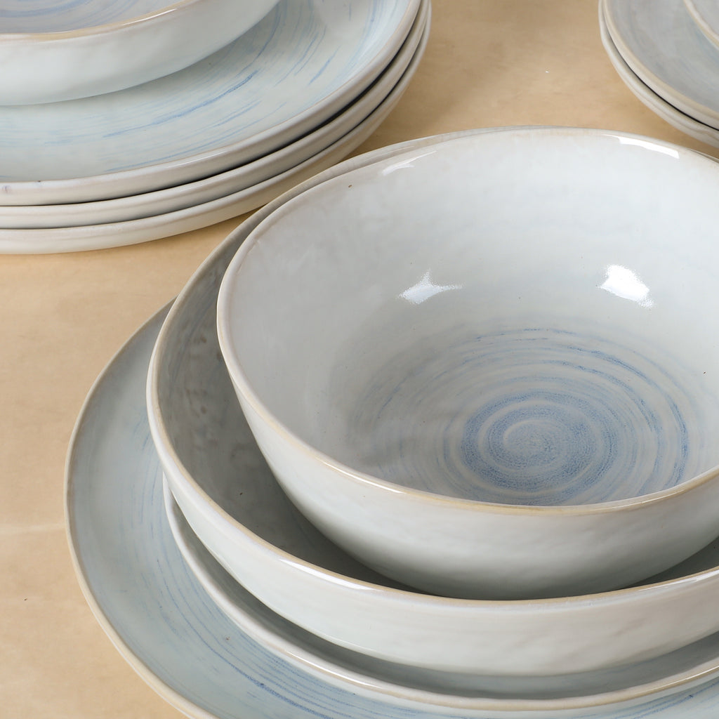 - ARTISANAL STYLE: Cloud-like swirls draw the eye to a beautifully plated meal or entrée. Soft, delicate hues from the reactive glaze create intentional flecks and variations to make each stoneware piece unique.