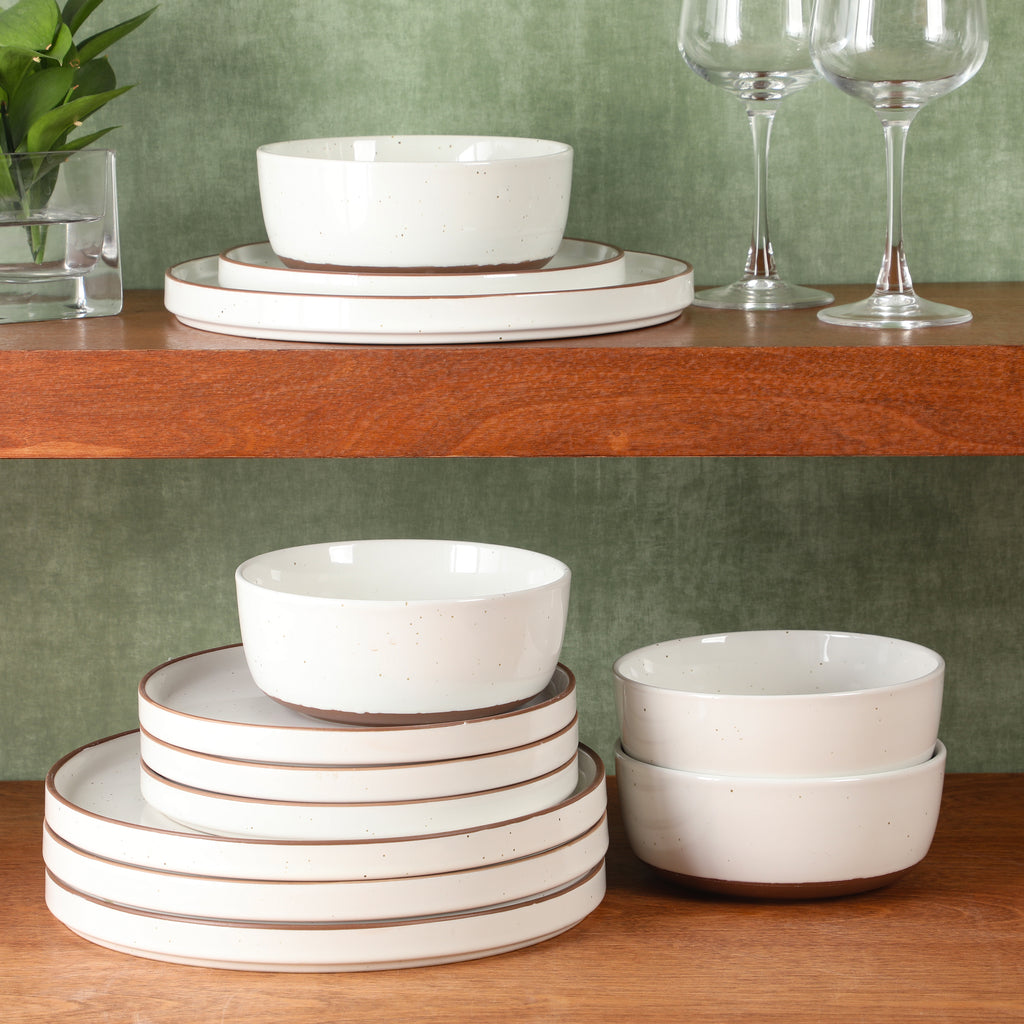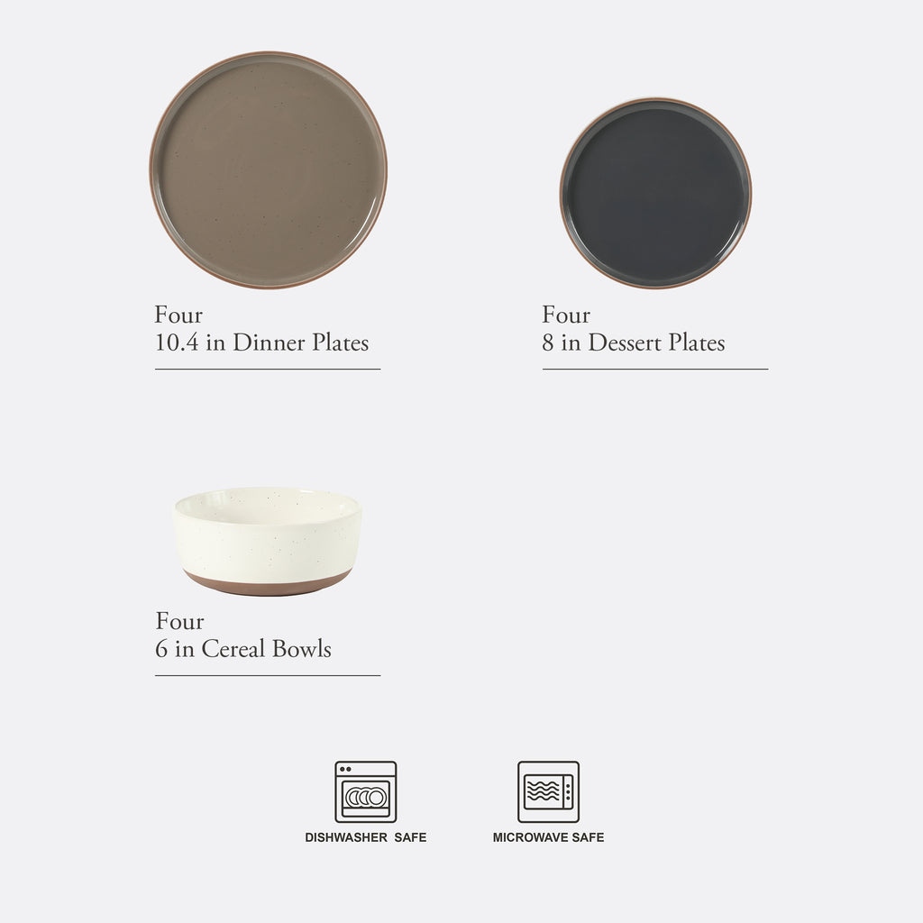 - FOUR PLACE SETTINGS: This complete set includes four 10.4-inch dinner plates, four 8-inch dinner bowls and 6-inch cereal bowls. Suitable for a service for four and a spread filled with homemade meals and authentic conversations.