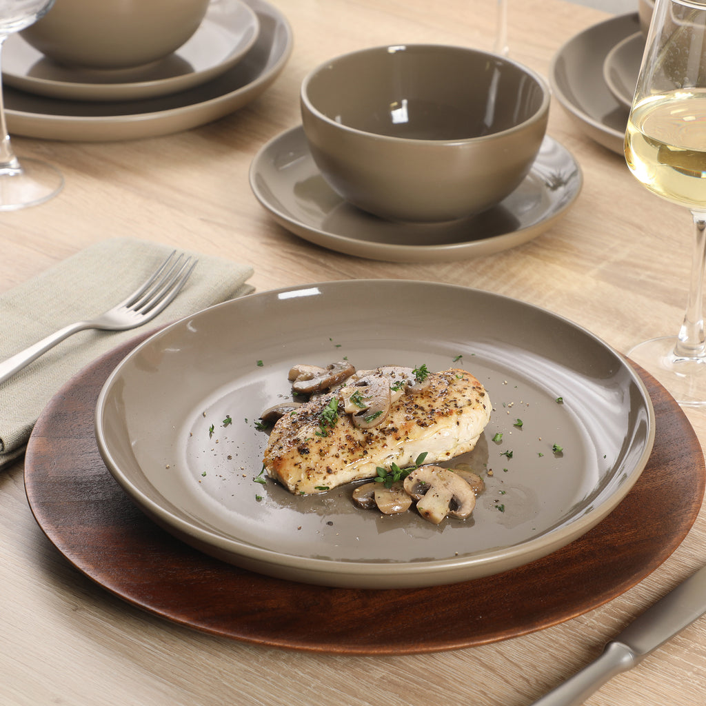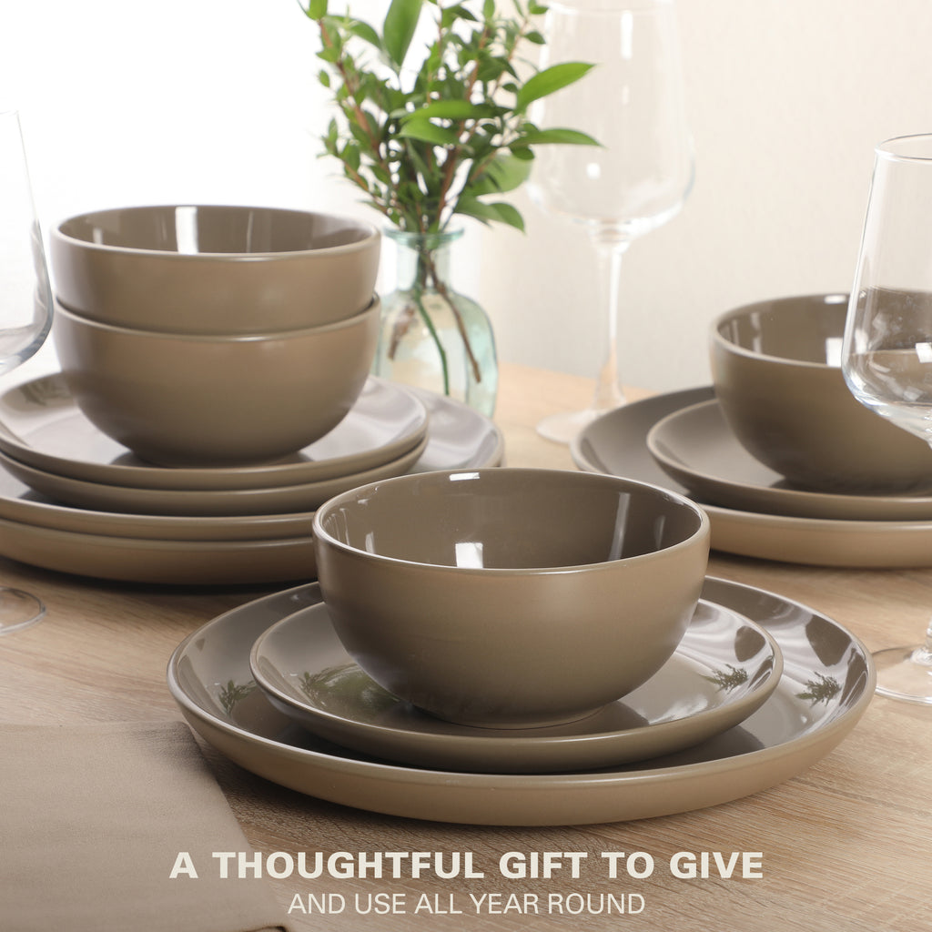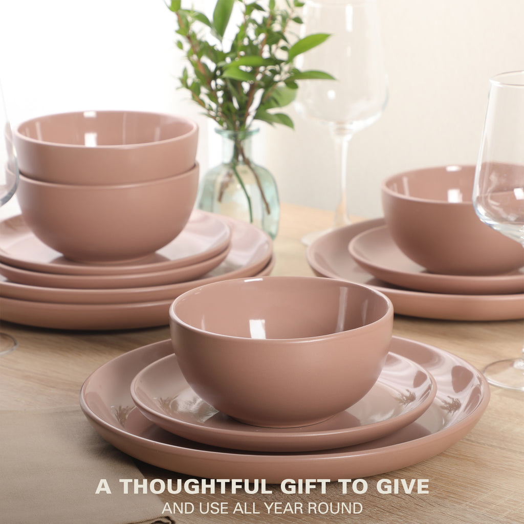 The Gibson Home Rockaway 12-piece Dinnerware Set is the perfect meeting place between contemporary style and everyday functionality. Every piece has a soft matte glaze finish that brings the latest on-trend colors to your dish collection. The Rockaway classic coupe shape looks great with any table setting and provides additional surface area for showing off delicious homemade meals. No matter what the occasion is the Gibson Home Rockaway 12-piece Dinnerware Set is a set you need in your home. All items are made of durable stoneware that is dishwasher and microwave safe.