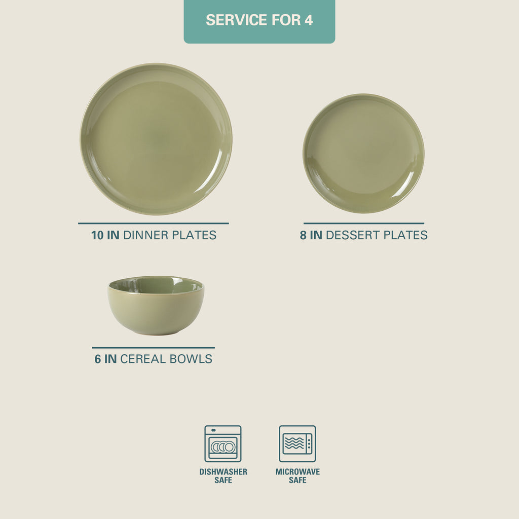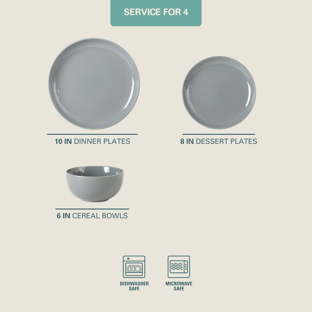 The set offers service for four including 4 dinner plates, 4 dessert plates, and 4 bowls. Bring fashionable elegance to your home today with the Rockaway dinnerware set and make sure to check out other color options for mix-and-match opportunities.