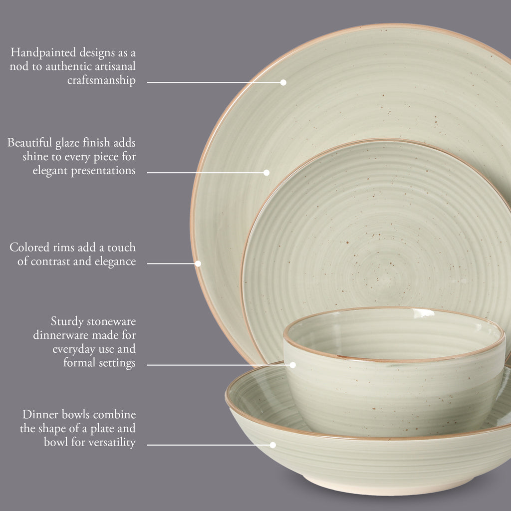 - EASY-TO-CLEAN DINNERWARE: Made from durable stoneware, these plates and bowls are elevated dining essentials that are best in versatility and effortless cleanup. Fired at high temperature for a wear-resistant and non-porous construction, these heavy stoneware pieces provide a sturdy look and feel for everyday use.