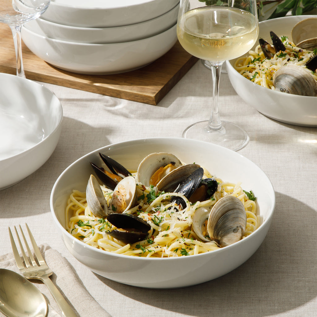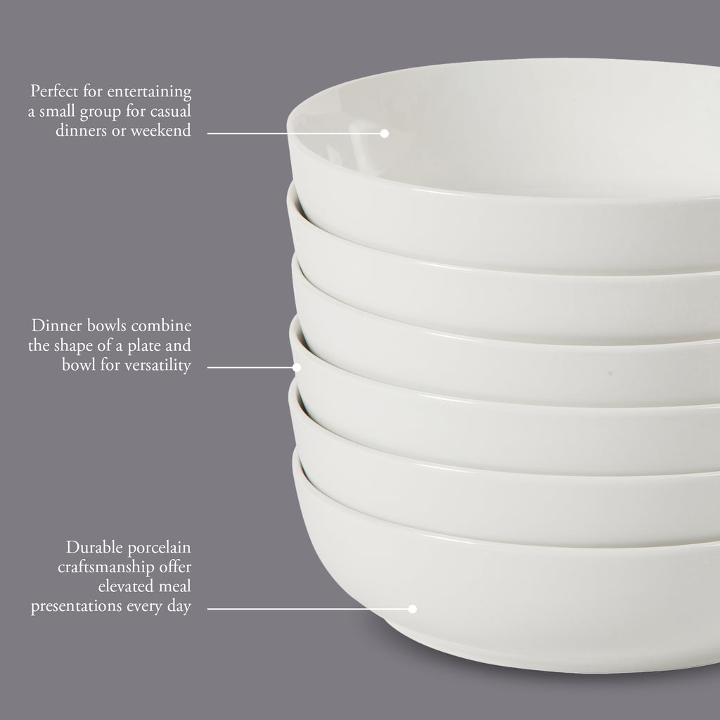 - A COMPLETE SET INCLUDES: Six 8.5-inch dinner bowls. Selected as one of the most budget-friendly dinnerware sets in the market, the Zen Buffetware collection offers durability and value with classic design.