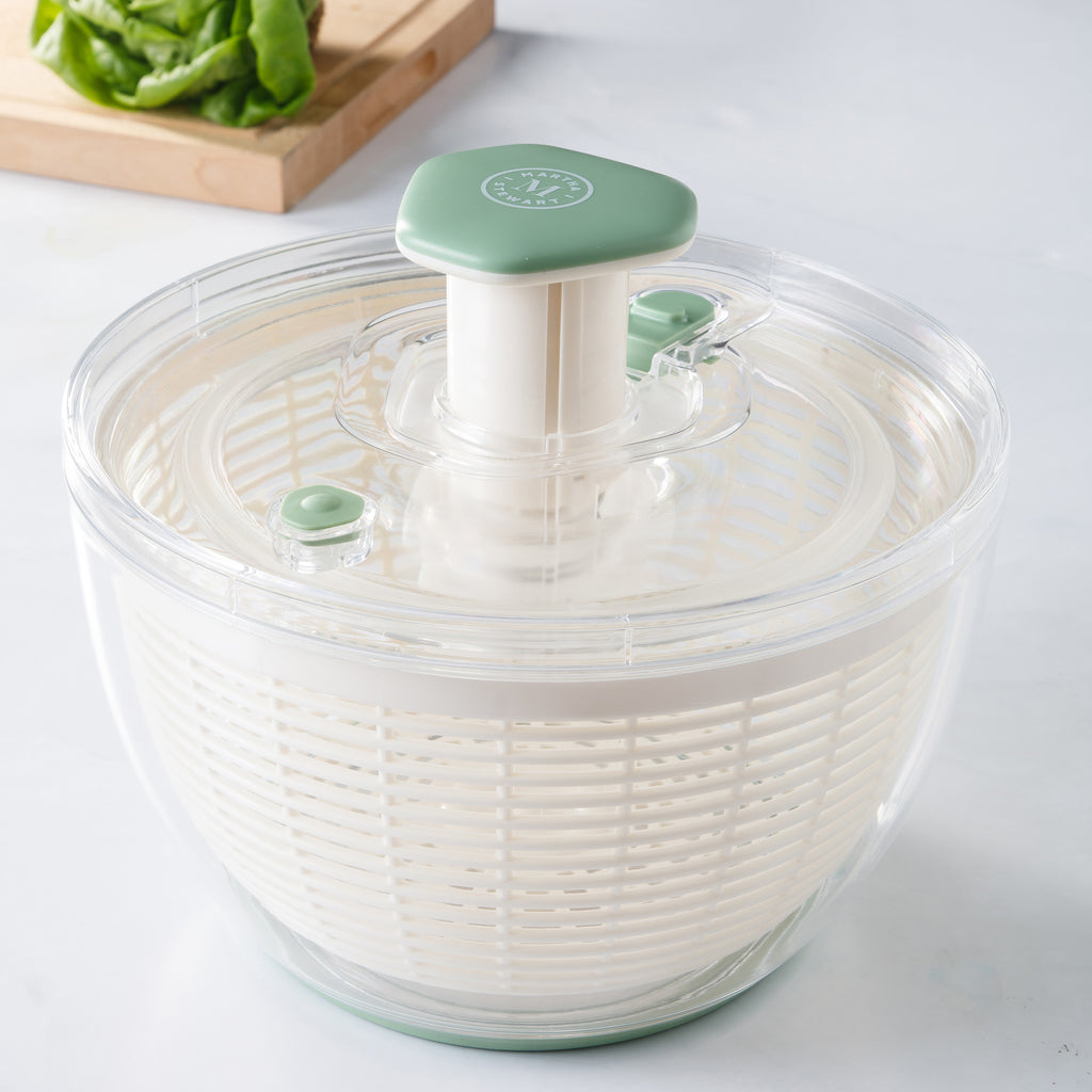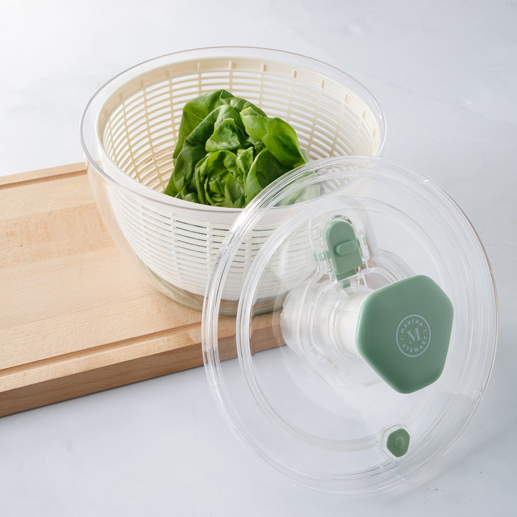 Upgrade your kitchen prep with the Martha Stewart Gulfwind 6.3 Qt Salad Spinner—a versatile tool designed to wash, rinse, and dry your produce with ease. Featuring a large 6.3-quart capacity, this spinner is perfect for family-sized salads or cleaning fruits and vegetables in one go. The efficient spin-dry mechanism removes excess water quickly, ensuring crisp, fresh greens every time.
