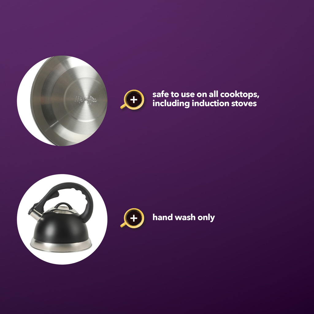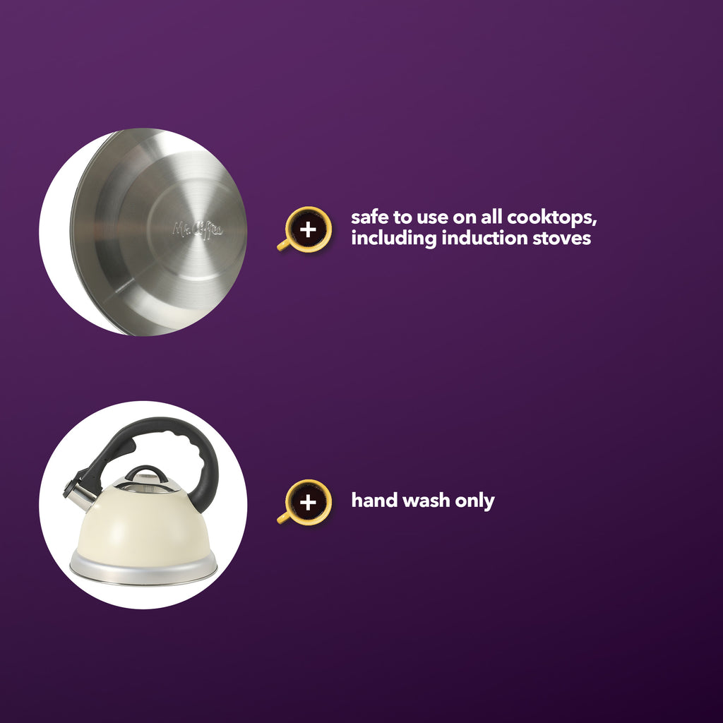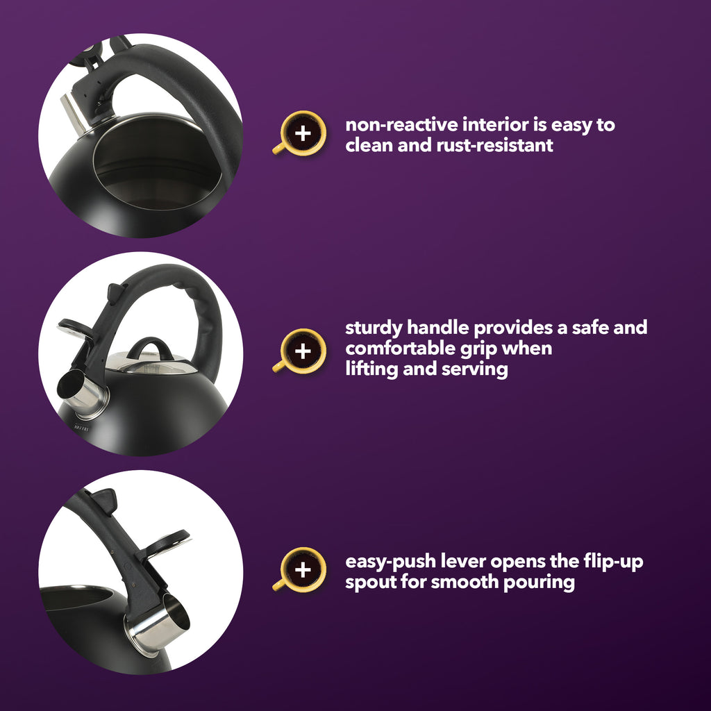 - WHISTLING TEAKETTLE: Modern teakettle with a traditional whistling spout that emits a soft signal when water has come to a rolling boil. Perfect for everyday use, it allows you to have hot water on standby when simmering stews and making stock or when guests come over for a quick chat over coffee or tea.