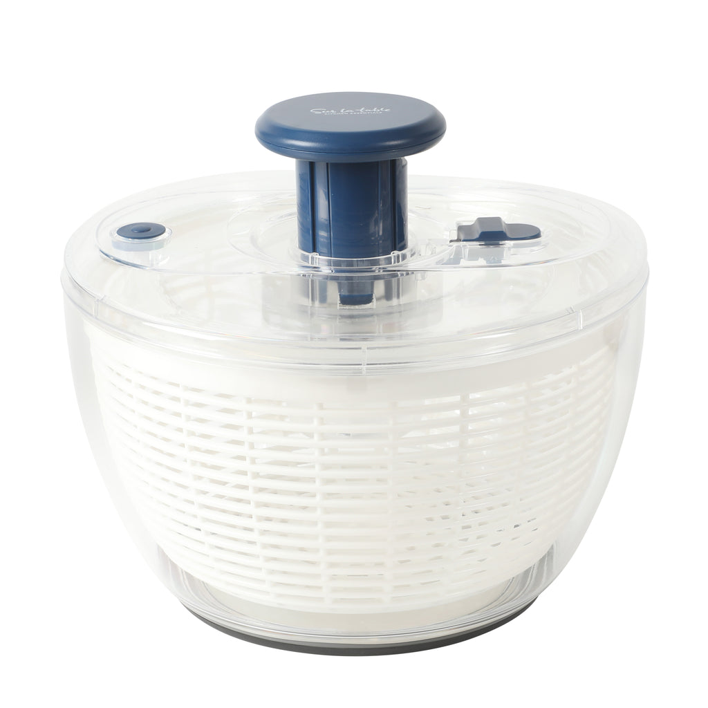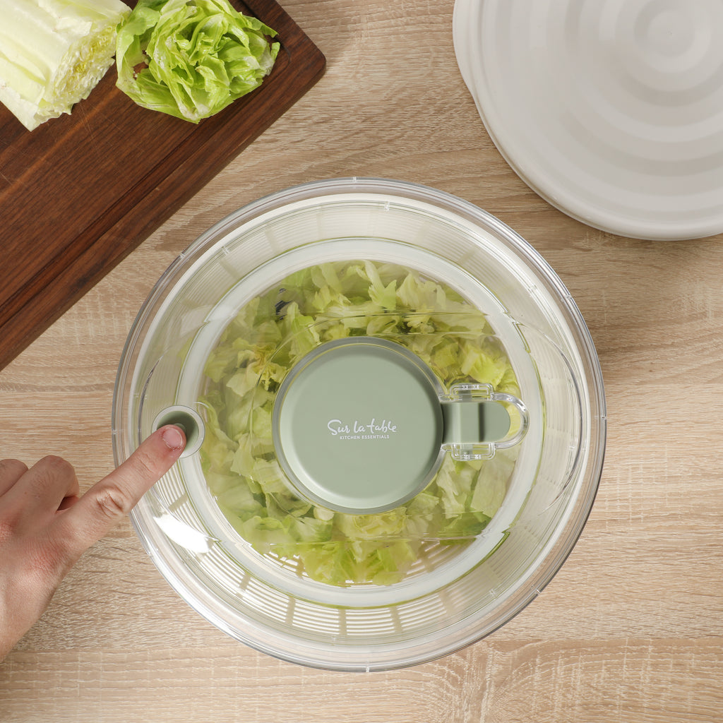 Meet the everyday essential that makes salad prep feel almost effortless. The Sur La Table Salad Spinner gives your greens the refresh they deserve, rinsing and drying everything from delicate herbs to hearty romaine in seconds. Press the pump to set the basket in motion and watch excess water pull away, leaving leaves crisp, dry, and ready to shine in any recipe. Tap the brake for an instant, gentle stop.