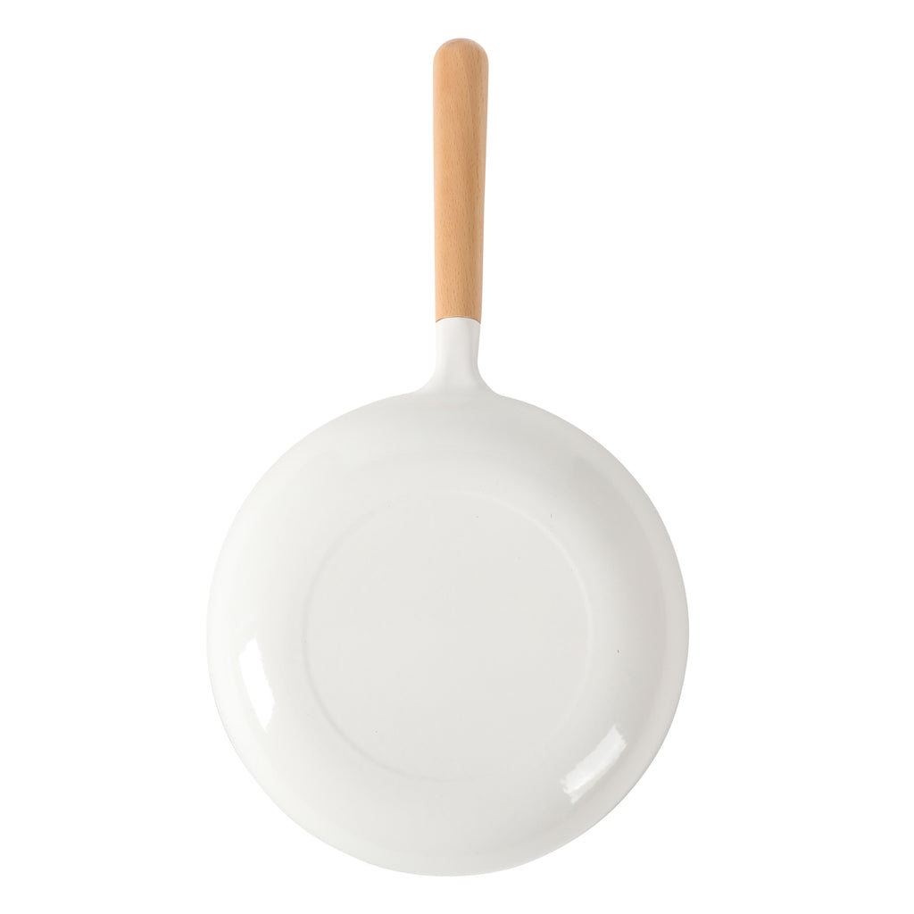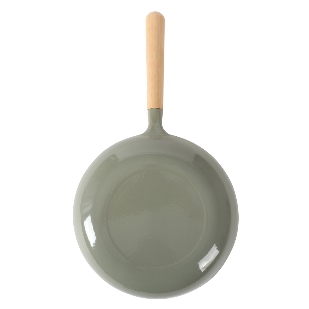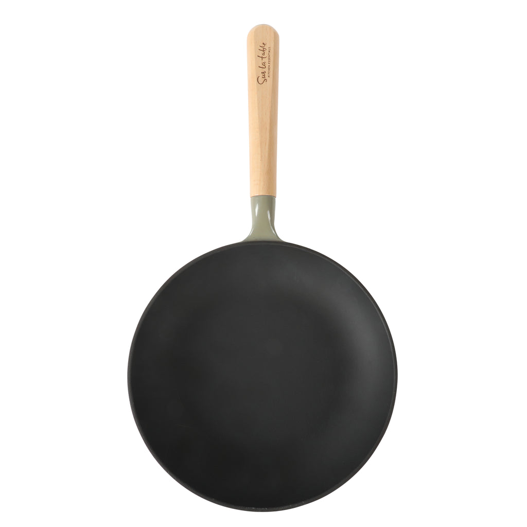 - SMOOTH WOOD HANDLE: extended handle provides sturdy support when lifting, tossing or moving the pan. it gives a good grip for when it's time to serve and transition from the stovetop to the table. place on top of a trivet to protect any surface from the heat then start serving!